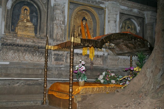 The seat of enlightenment (bodhi maṇḍa, 道場) at the base of the tree