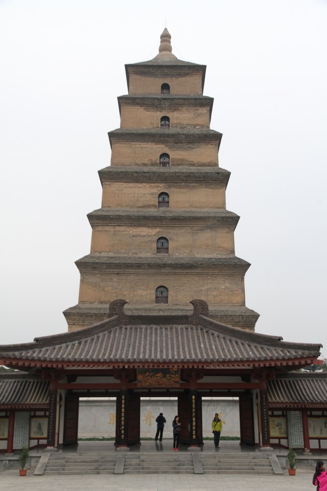 The Great Wild Goose Pagoda (Dàyàn Tā, 大雁塔) at The Monastery ‘Greatness of Mercy’ (Dà Cí’ēn Sì, 大慈恩寺) in downtown Xi’an. This iconic pagoda was built in 648-649 to hold the treasures that Xuánzàng (玄奘) brought back from India on his epic trip there from 629 to 645. Here he set up the headquarters for his great translation project that lasted until his death in 664.