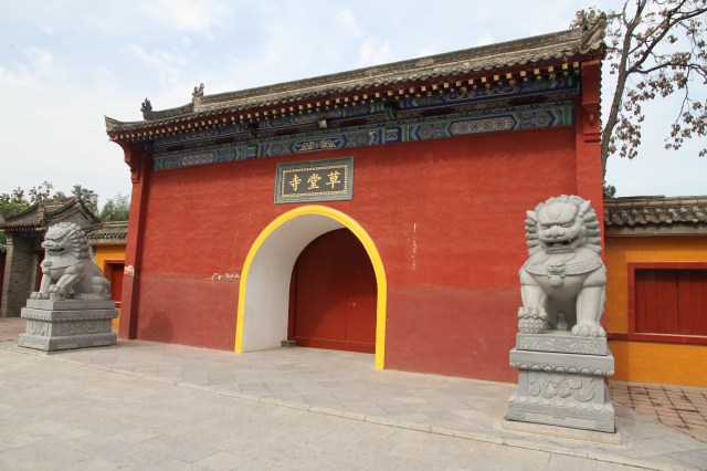 Entrance to the Monastery of the Thatched Cottage (Cǎotáng Sì, 草堂寺) in Xī’ān (西安, formerly known as Cháng’ān, 長安). Built in 401 to house Kumārajīva and his team, who translated many scriptures and founded the Chinese ‘Dialectical’ (Madhyamaka) of ‘Three Treatises’ School.